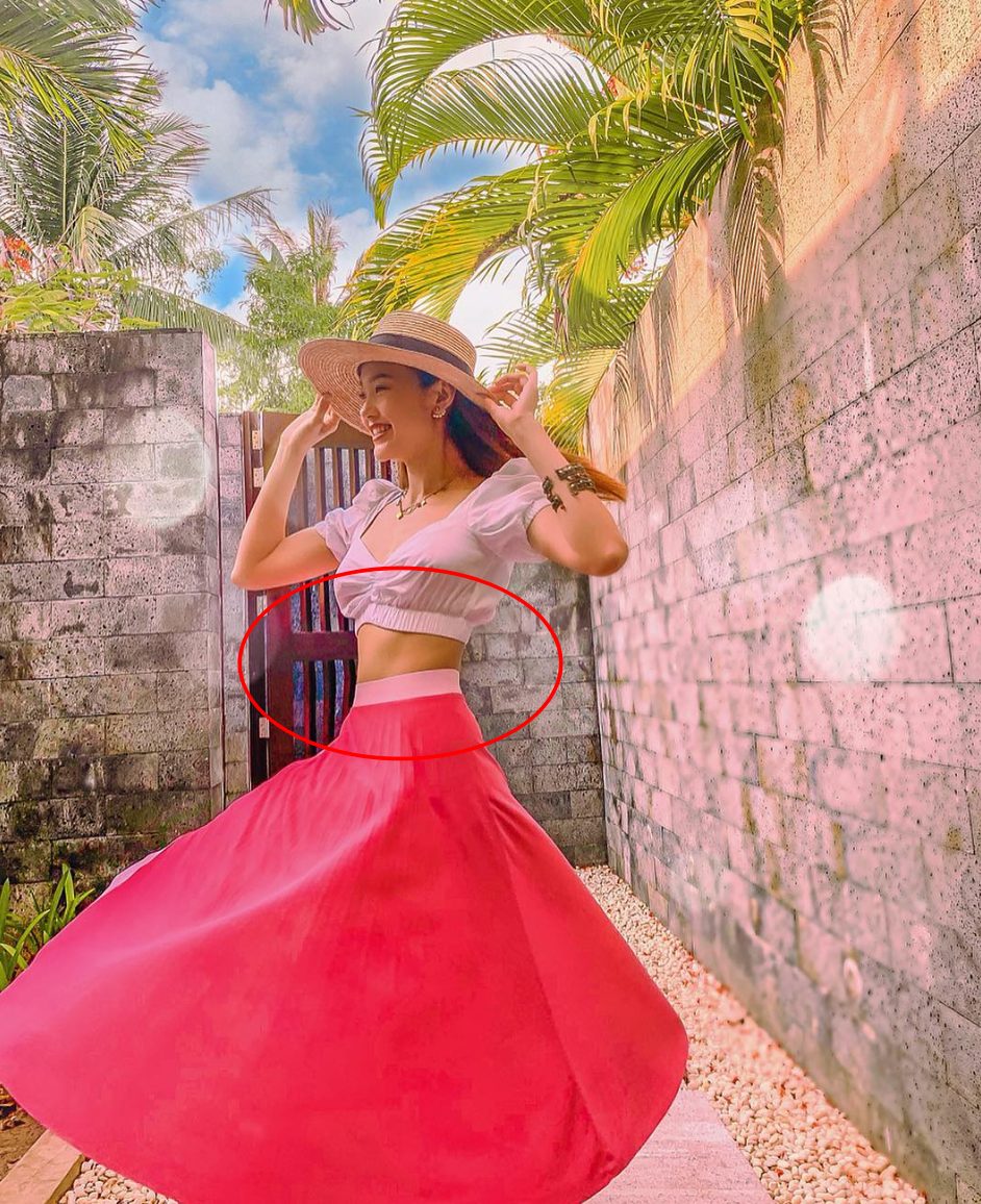 Đường thẳng không còn là đường thẳng trong bức ảnh chụp cận cảnh vóc dáng Minh Hằng.