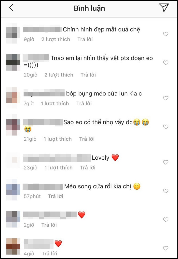 Ở phần bình luận, nhiều người cho rằng Minh Hằng đã photoshop thu nhỏ vòng eo quá đà khiến cả chiếc cửa phía sau cũng bị bóp méo đến kỳ lạ. “Bóp bụng méo cửa luôn kìa chị”, “Méo song cửa rồi kìa chị”… là một vài trong số những bình luận mà khán giả dành cho Minh Hằng phía dưới bức hình.