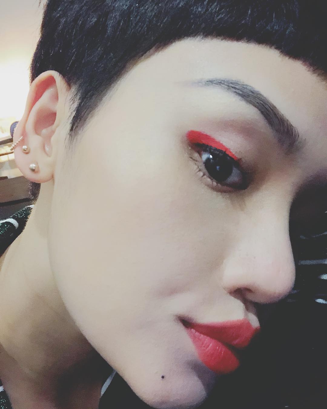 Sở hữu khuôn mặt khá mũm mĩm và đầy đặn, có vẻ Miu Lê thật sự không thích hợp với phong cách môi quyến rũ này.