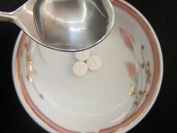 - Cho 3 viên aspirin cùng nước ấm vào bát rồi dùng thìa nghiền đến khi tan ra hết thì dừng lại.