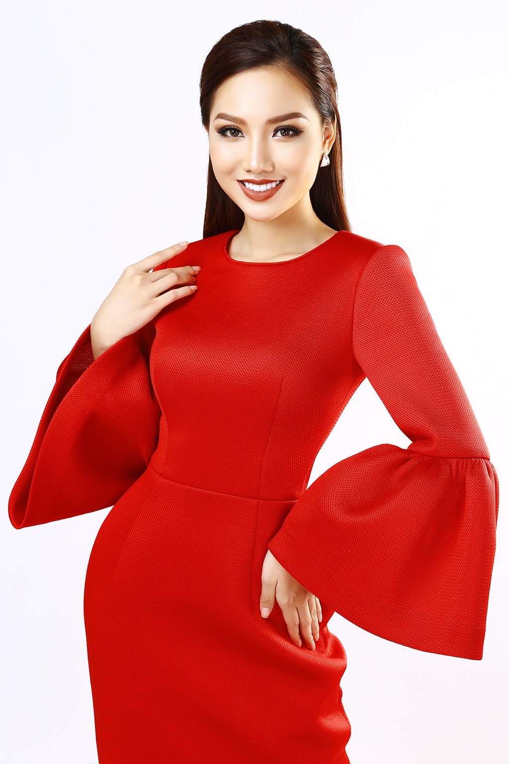Không chỉ tôn dáng, trang phục đỏ còn góp phần tôn lên làn da trắng của Hoàng Thu Thảo và quan trọng nhất vẫn là thần thái tự tin của Nữ hoàng sắc đẹp toàn cầu 2017.