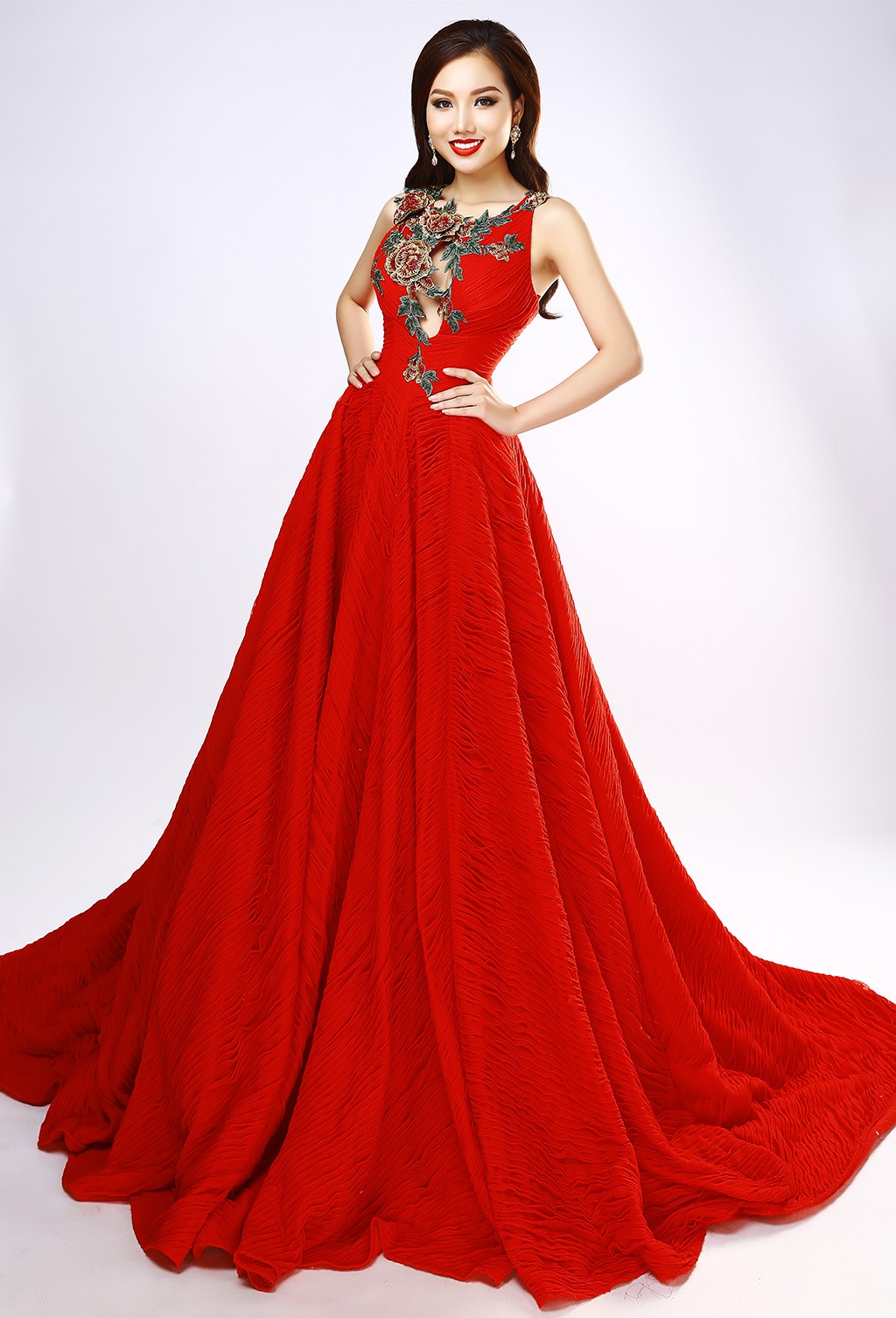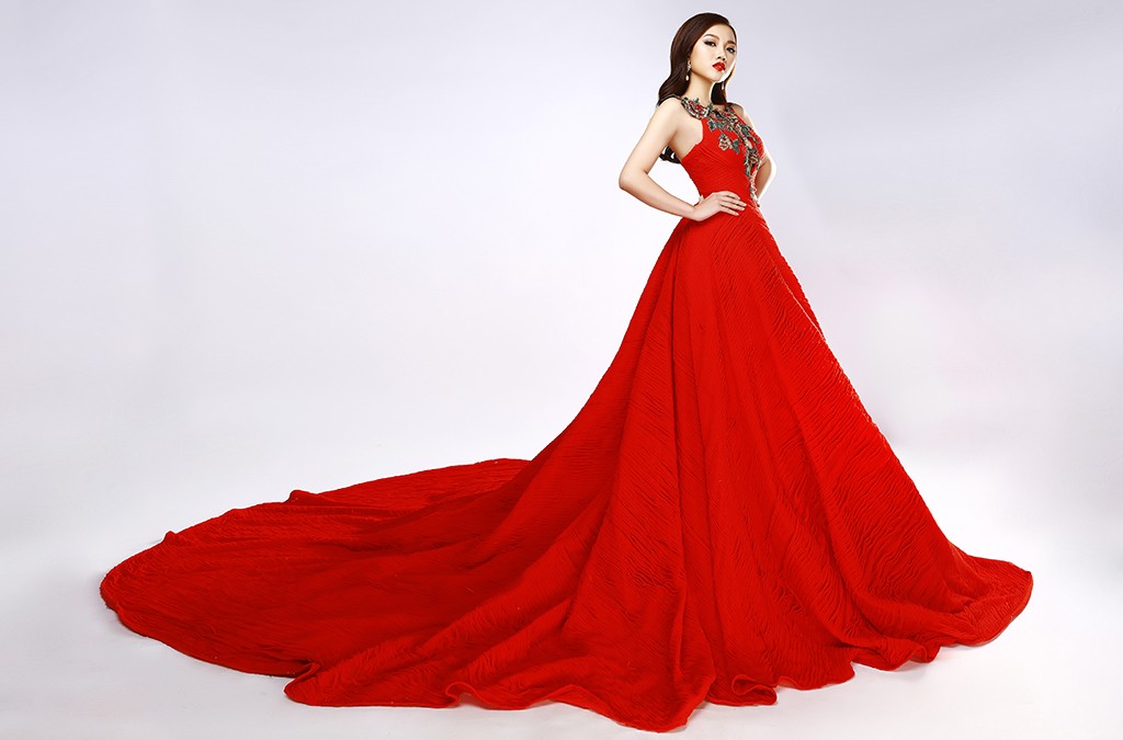 Trong bộ ảnh mới nhất, Hoàng Thu Thảo quyết định chọn những bộ váy đỏ rực rỡ của hai nhà thiết kể nổi tiếng là Đỗ Mạnh Cường và Lê Long Dũng.