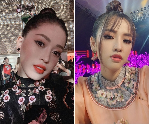 Kỳ Duyên và Diệp Lâm Anh cũng gây bất ngờ khi khá giống nhau. Diện trang phục giống, make up và kiểu tóc cũng giống nốt thì rất khó phân biệt đâu là Kỳ Duyên, đâu là Diệp Lâm Anh.