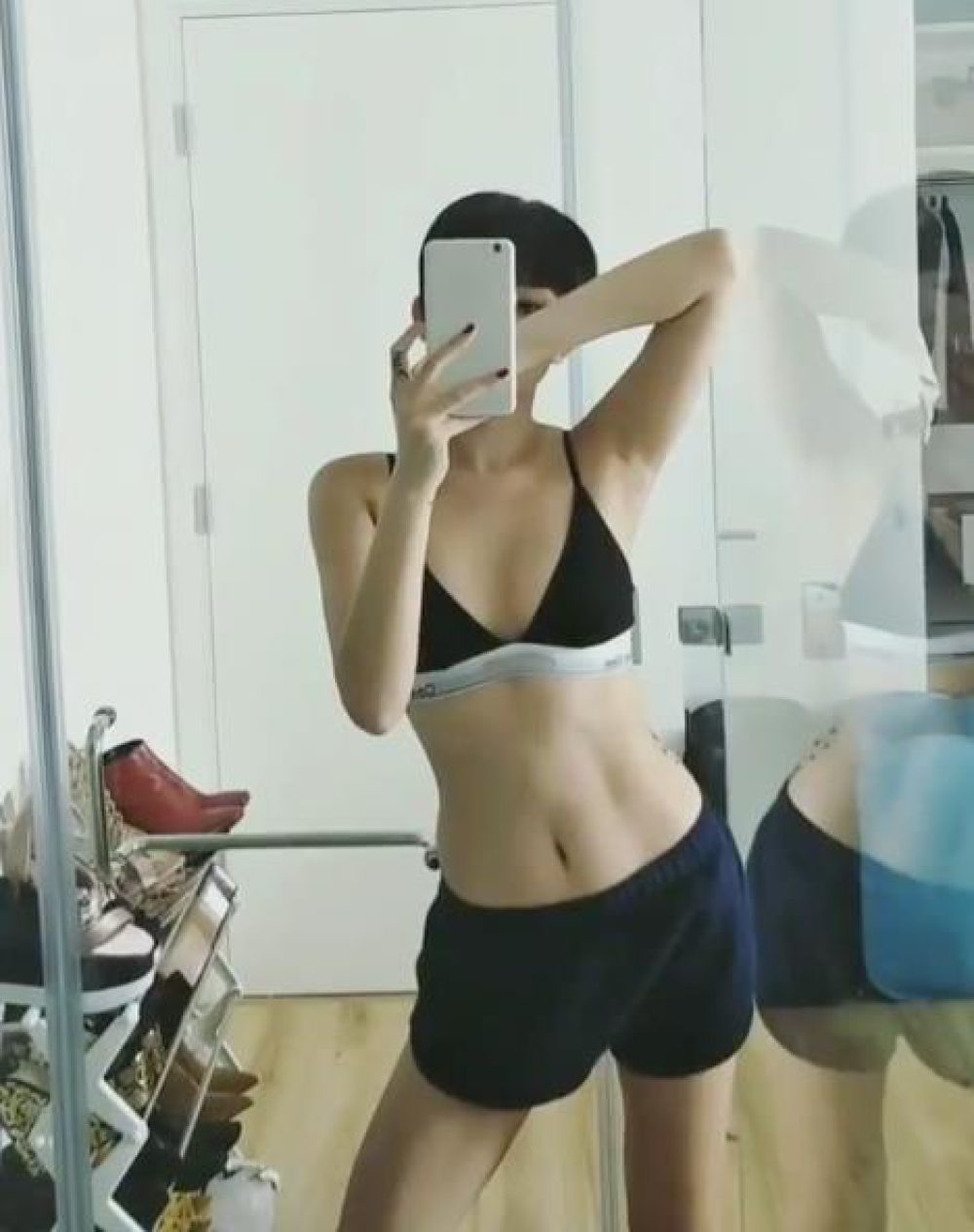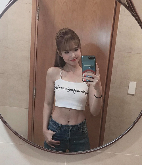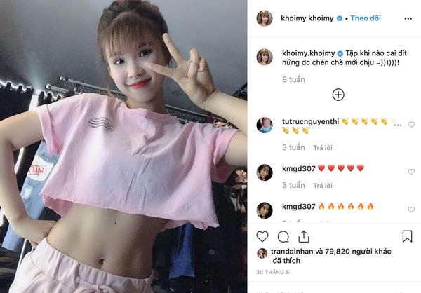 Khởi My cũng thường đăng ảnh mặc áo hở bụng hoặc ảnh tập gym, tiết lộ bí quyết giữ dáng.