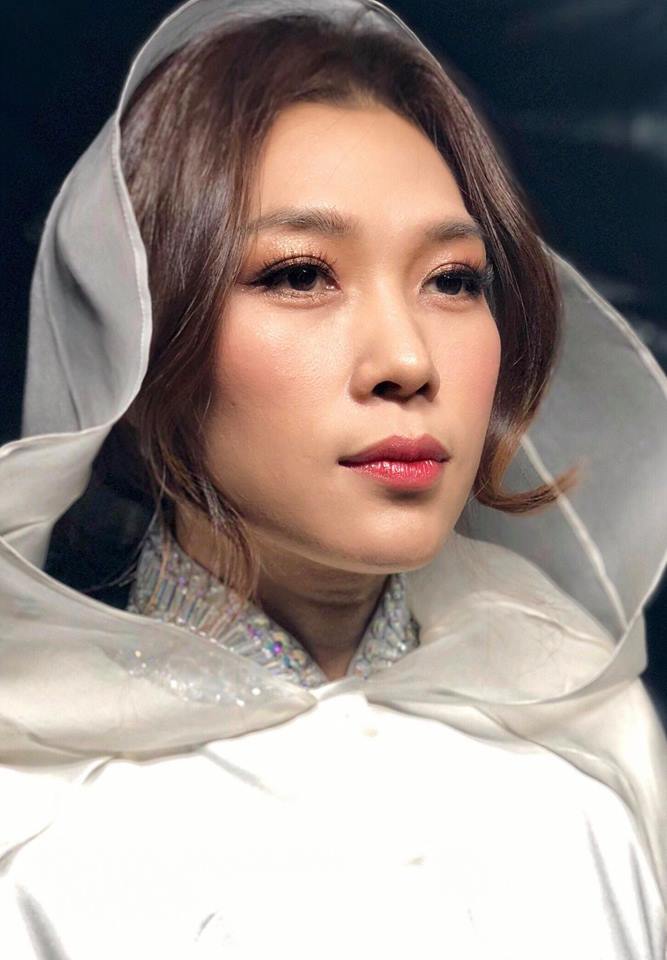 Với kiểu tóc dài xoăn sóng được nhuộm hạt dẻ, trông cô nàng “Họa mi tóc nâu” như cô gái độ tuổi 20.