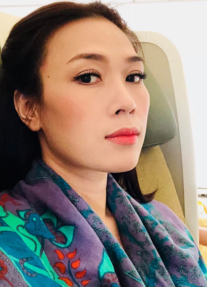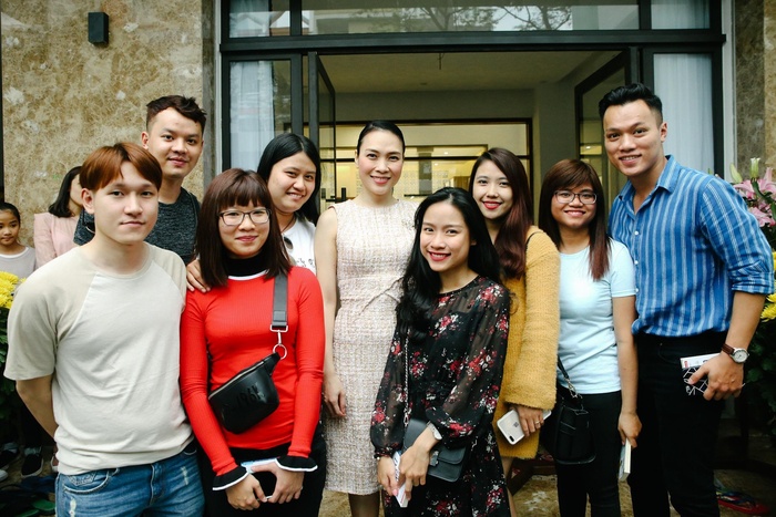 Chị Tâm buộc tóc gọn ở phía sau trẻ trung như thiếu nữ bên fan hâm mộ.