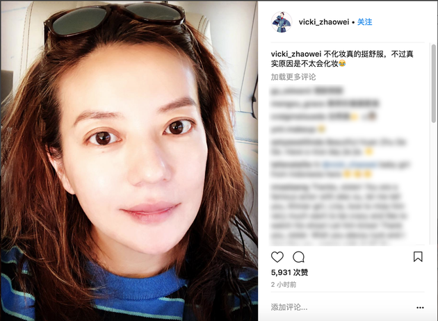 Không thua kém bạn bè, Triệu Vy cũng khiến người hâm mộ phát sốt vì bức ảnh mặt mộc đẹp không thua kém gì khi trang điểm. Chính làn da sáng cùng đôi mắt to đã giúp Én Nhỏ ghi điểm mạnh.