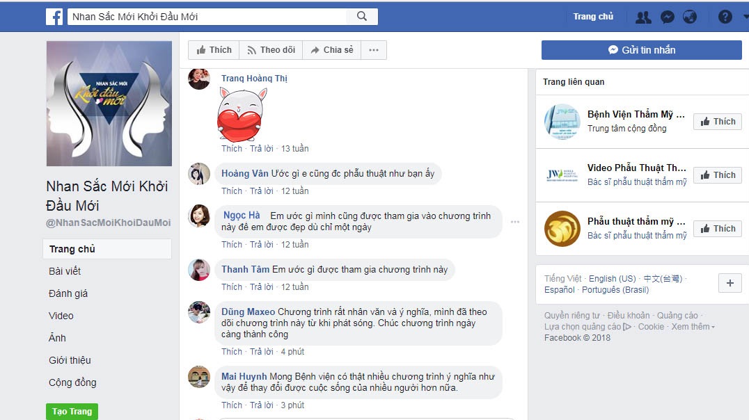 Ngoài ra, các bạn trẻ khi theo dõi Fanpage chương trình cũng có những sự đồng cảm và ý kiến vô cùng tích cực. Bạn Ngọc Hà bình luận: “Em ước gì mình cũng được tham gia chương trình này để được đẹp dù chỉ một ngày”.