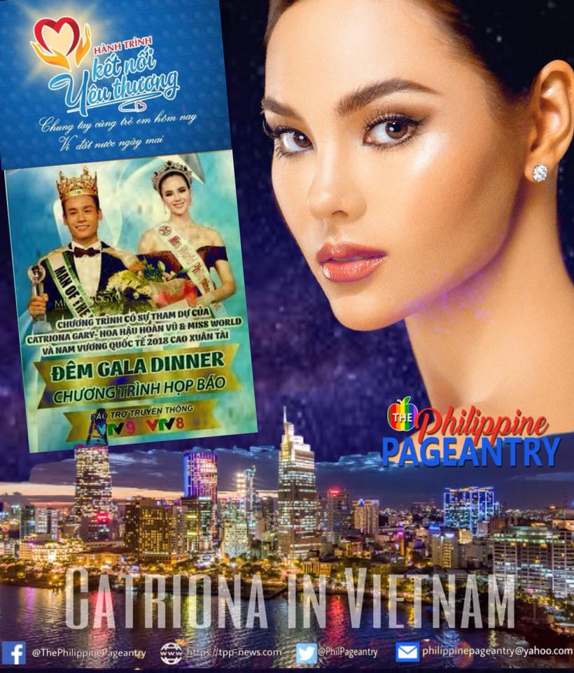 Lần đầu tiên Catriona Gray - đương kim Hoa hậu Hoàn vũ Philippines 2018 sẽ có chuyến công tác tại Việt Nam trong chiến dịch “Hành trình kết nối yêu thương”. Catriona là người dẫn đầu một tổ chức phi chính phủ tập trung vào giáo dục được, nhằm mang đến cho trẻ em cơ hội phát triển trí tuệ. Cô sẽ tham gia cùng các đại sứ giáo dục khác ở Việt Nam.