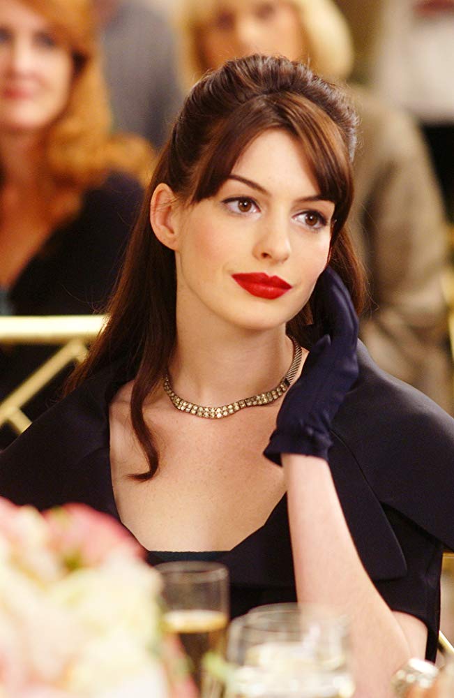 Tác phẩm điện ảnh đầu tiên Anne Hathaway tham gia là bộ phim của Disney “The Princess Diaries” ( Nhật ký công chúa), từ bộ phim này cái danh hiệu “nàng công chúa” vẫn theo cô cho đến thời điểm hiện tại. Trong phần đầu phim, Anne đã hoá thân thành một học sinh cấp 3 ngây thơ, trong sáng với mái tóc rối xù đặc trưng. Sau khi phát hiện bản thân là một nàng công chúa, Anne đã có sự thay đổi lớn về bề ngoài của mình. Mái tóc bông xù rối rắm được duỗi thẳng giúp gương mặt trở nên thanh tú và xinh đẹp hơn. Từ bộ phim tuổi teen này đã giúp nữ diễn viên ghi dấu ấn trong lòng người hâm mộ.