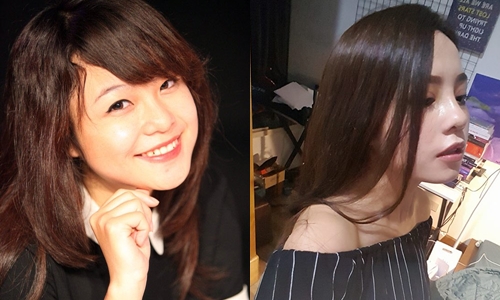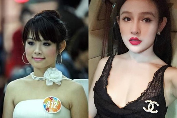 So sánh hai bức ảnh cùng góc của Thái Trinh trước và sau khi thẩm mỹ.