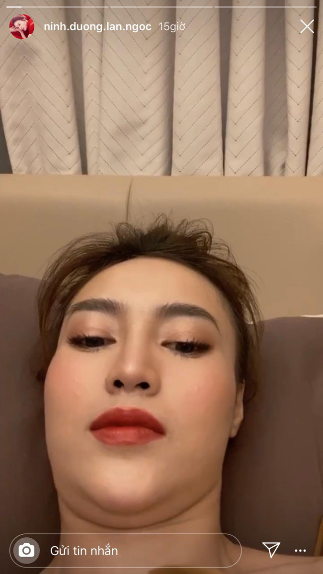 Với góc máy quay ở dưới lên, Ninh Dương Lan Ngọc khiến fan 'hú hồn' khi tự khoe ảnh cằm nọng và gương mặt béo múp