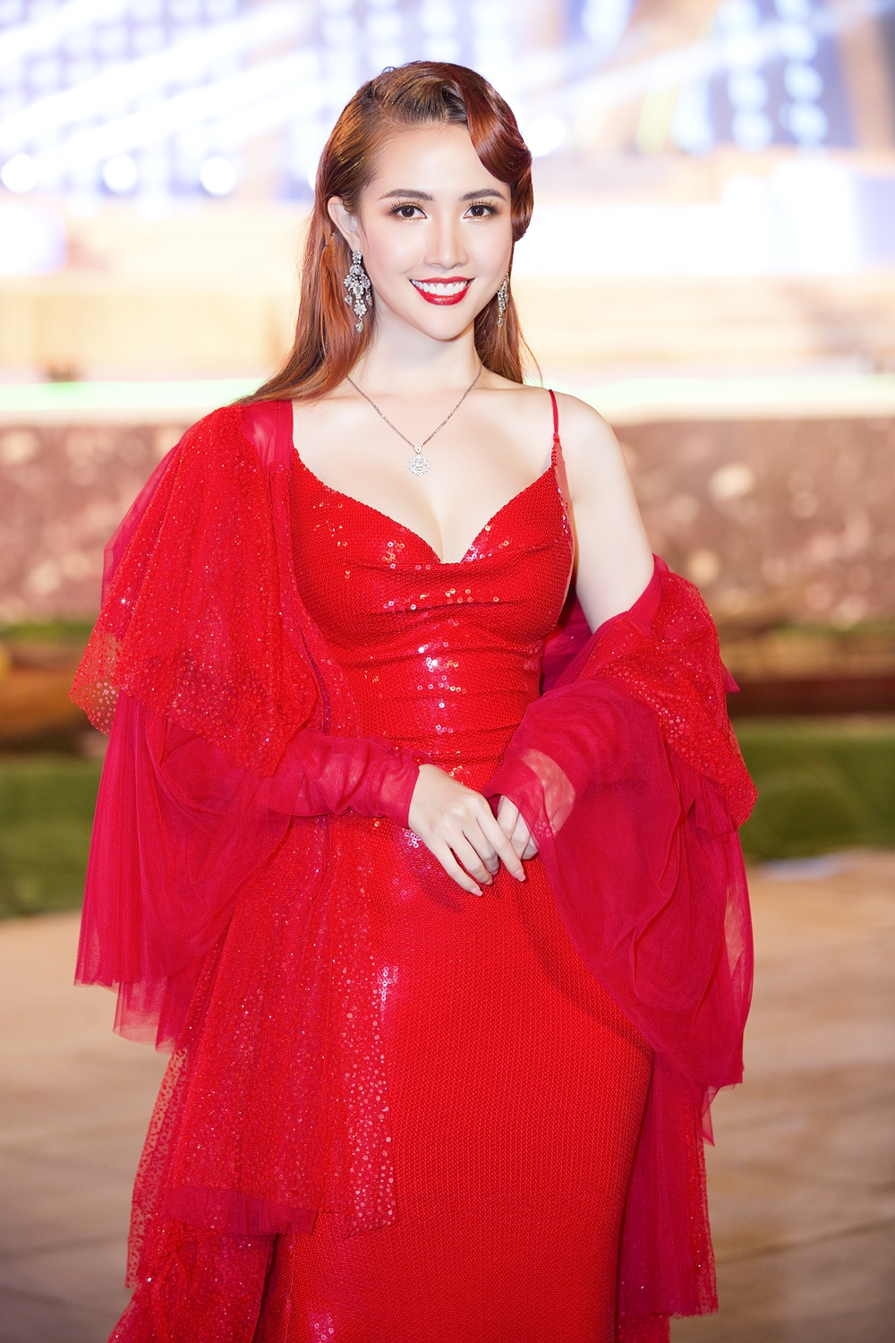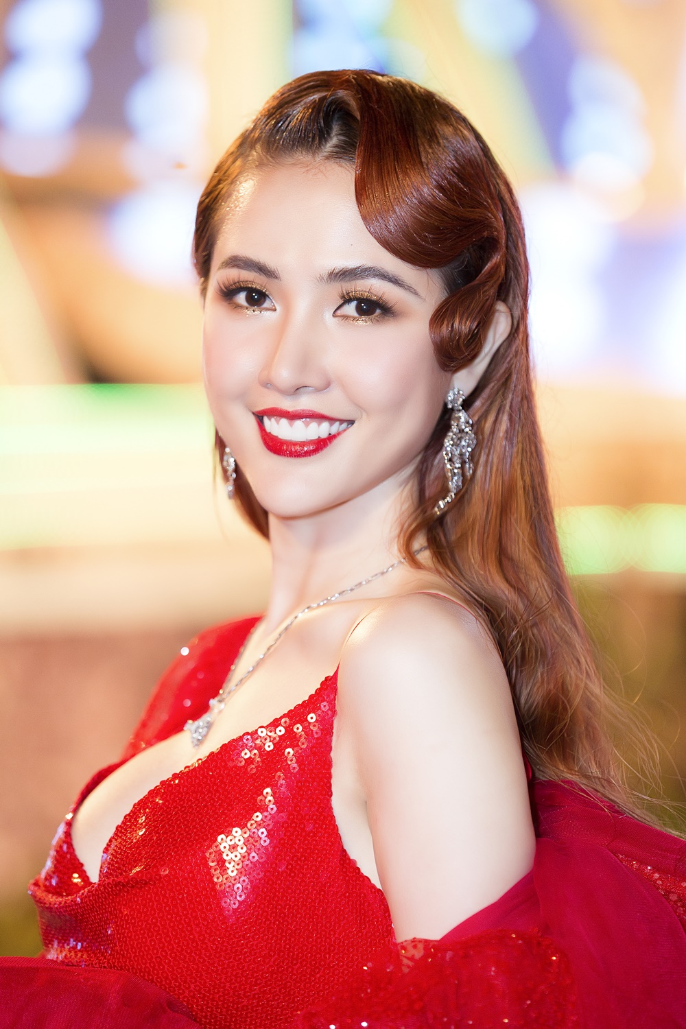 Xuất hiện tại sự kiện, nữ giám khảo sinh năm 1990 khoe nhan sắc rực rỡ trong thiết kế đầm đuôi cá đỏ của nhà thiết kế Minh Tuấn Nguyễn. Bộ váy có phần áo choàng dài tạo cảm giác quyền lực, uy nghi. Đặc biệt, set trang sức kim cương tinh xảo có giá trị hơn chục tỷ đồng được Phan Thị Mơ diện kèm càng làm tôn lên sự sang trọng, quý phái cho tổng thể set đồ như nhẫn và dây chuyền.