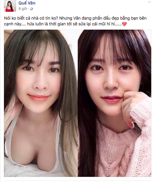 Chiếc mũi mới nhất của Quế Vân vừa được cô nàng chia sẻ trên facebook cá nhân.