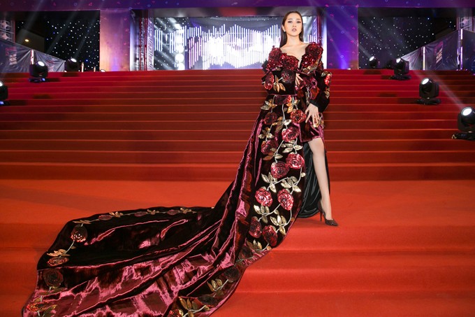 Xuất hiện với bộ váy dài tới chục mét ấn tượng như thế này, Bảo Anh cũng có phần “họa mặt” hút hồn không kém.