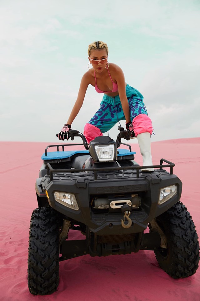 Gam màu này vốn khá kén da nhưng lại cực kỳ hợp với nước da rám nắng hiện tại của nàng hot girl 21 tuổi, tôn lên vẻ trẻ trung khỏe khoắn đầy quyến rũ của cô nàng.