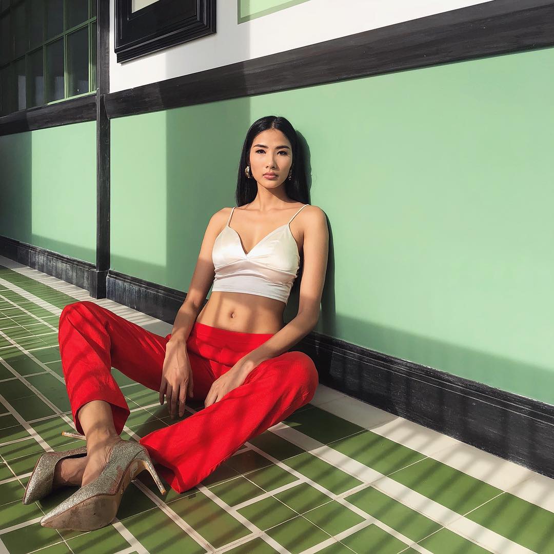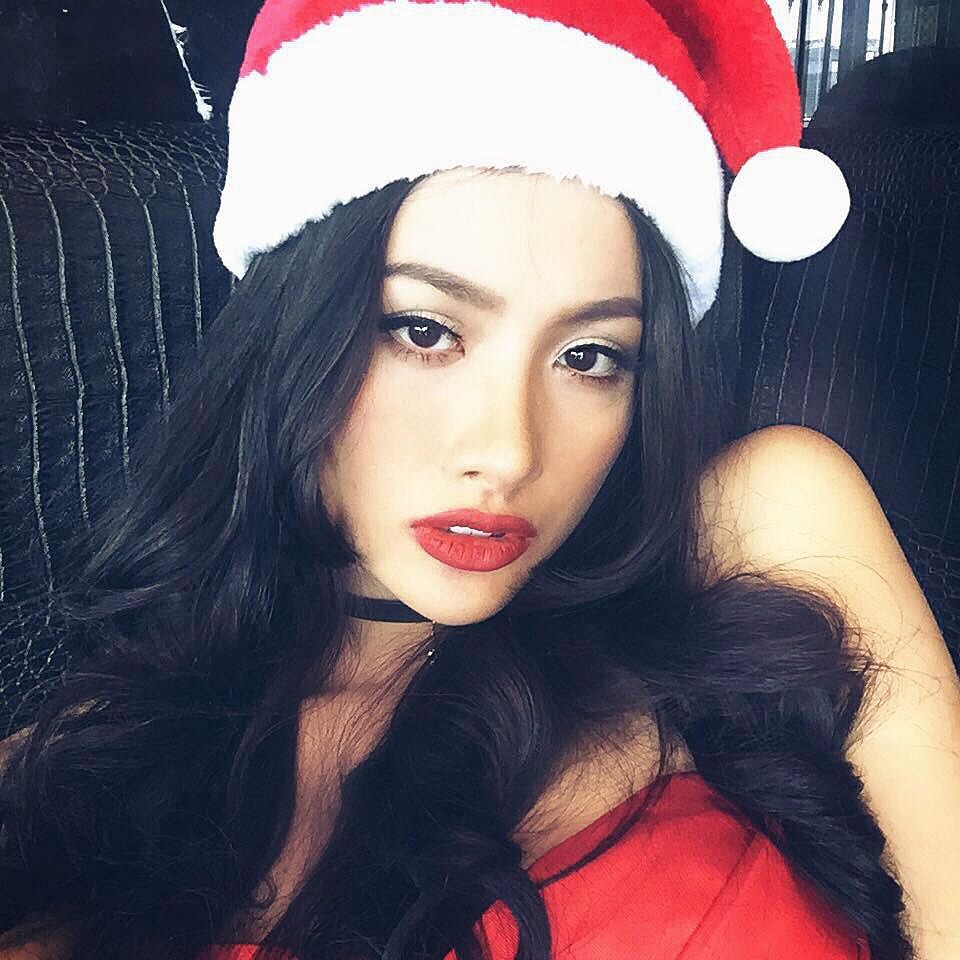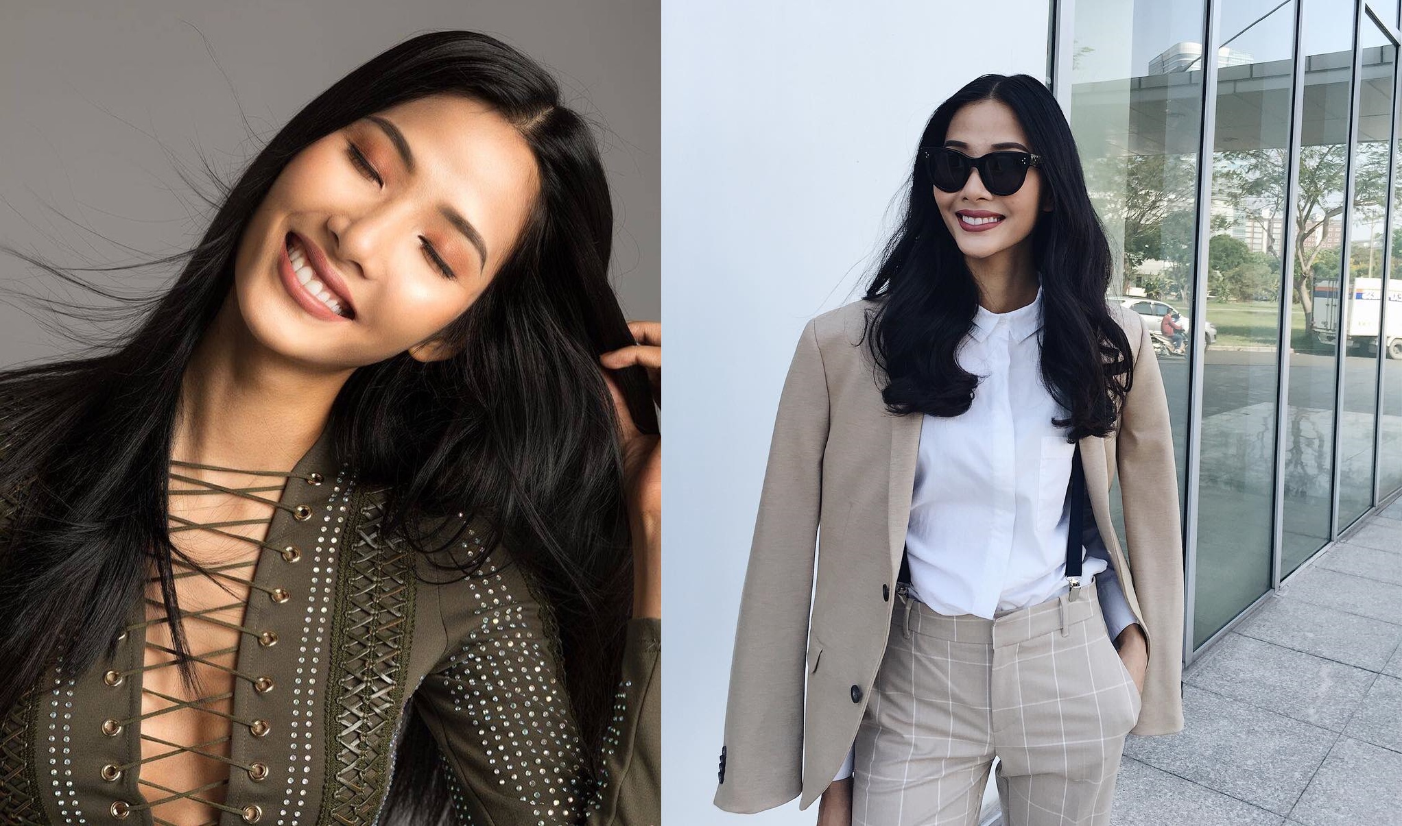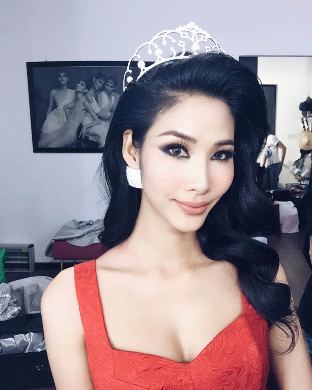Hoàng Thùy đã trung thành với mái tóc đen tuyền này khá lâu, và cũng chính mái tóc đen này theo cô đăng quang Á hậu Hoa hậu hoàn vũ 2017.