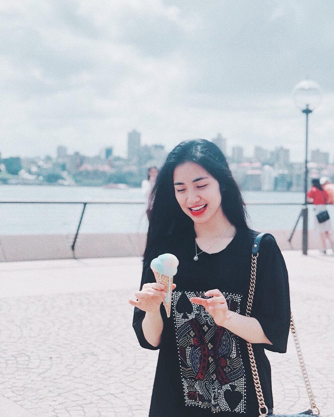 Mái tóc đen xõa tự nhiên đang theo chân Hòa vi vu ở Úc.
