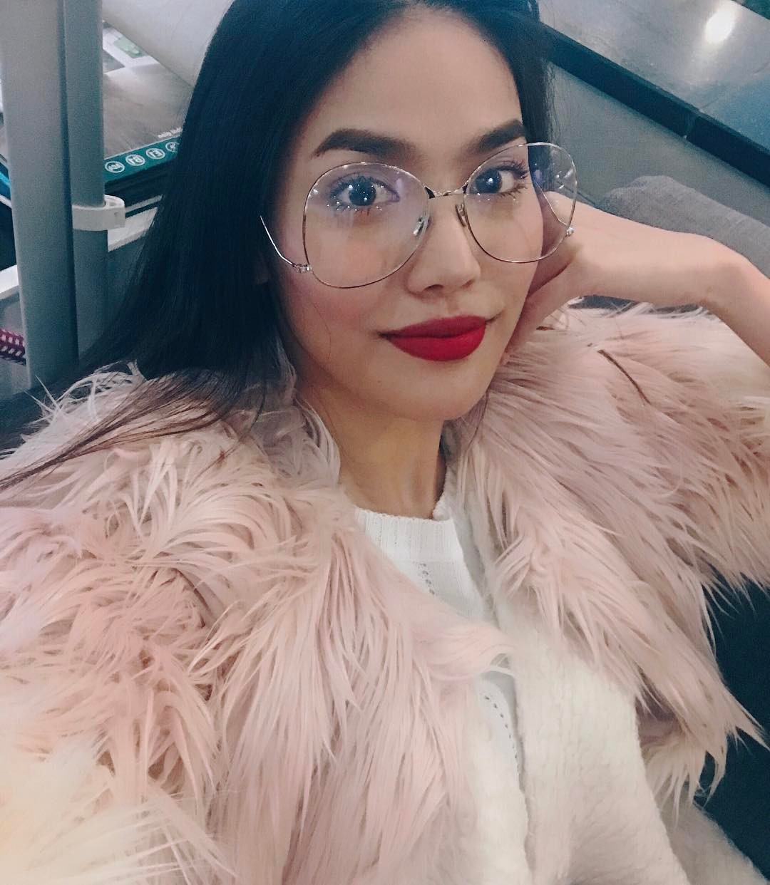Tông màu trang điểm khá Tây vô cùng nổi bật trên mái tóc đen tuyền này.