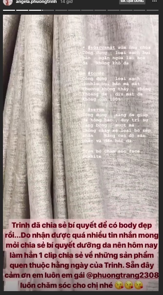 Angela Phương Trinh chia sẻ bí quyết làm đẹp trên trang cá nhân.