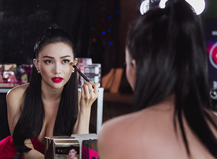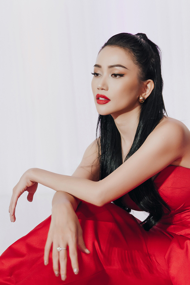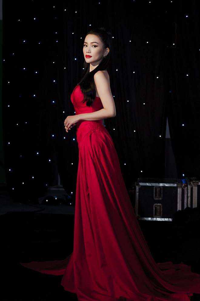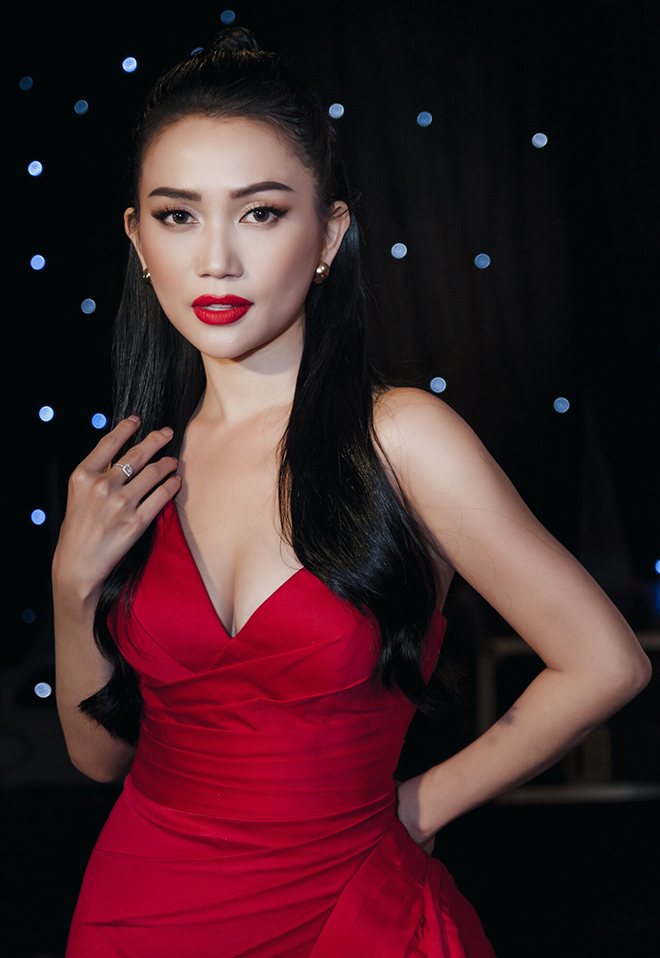 Có mặt ở sự kiện, Sĩ Thanh xuất hiện nổi bật trong bộ đầm cúp ngực tông màu đỏ. Thiết kế có phần chân váy xoè rộng, mang đậm phong cách mà các hoa hậu, á hậu Việt ưa chuộng trong thời gian qua. Tuy nhiên, khi chọn kiểu váy này, giọng ca Oh my chuối! khéo léo chọn kiểu tóc cột cao, trang điểm sắc nét, hợp với hình tượng sexy cá tính mà cô đang hướng đến.