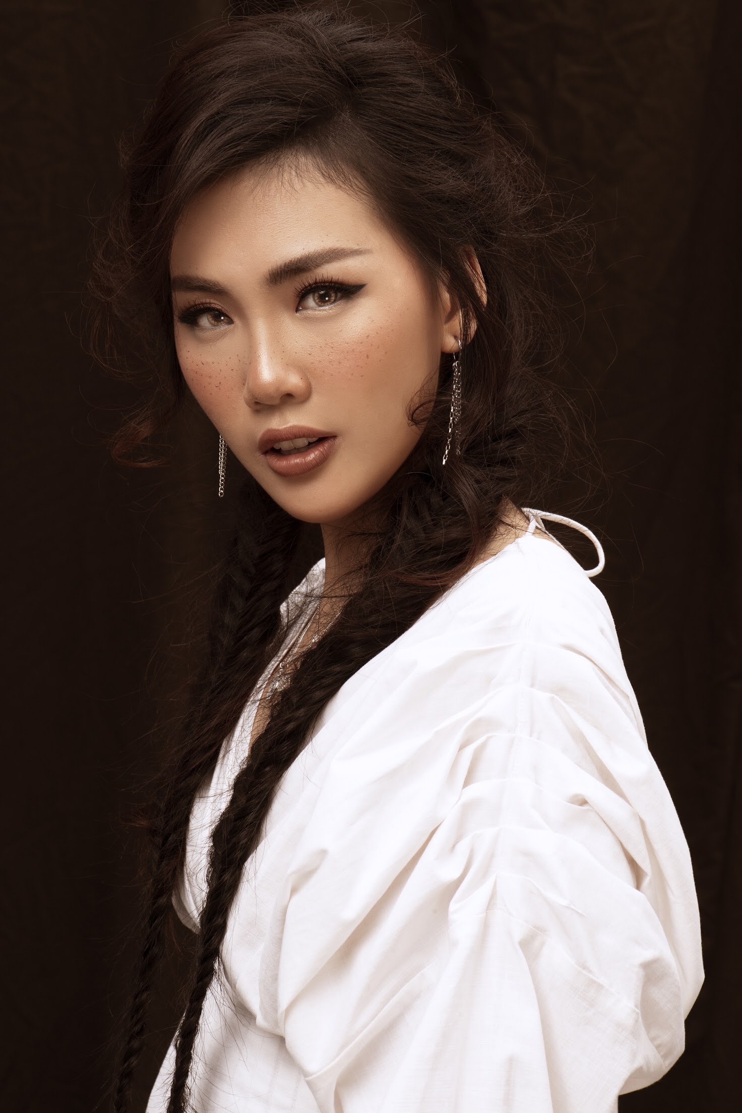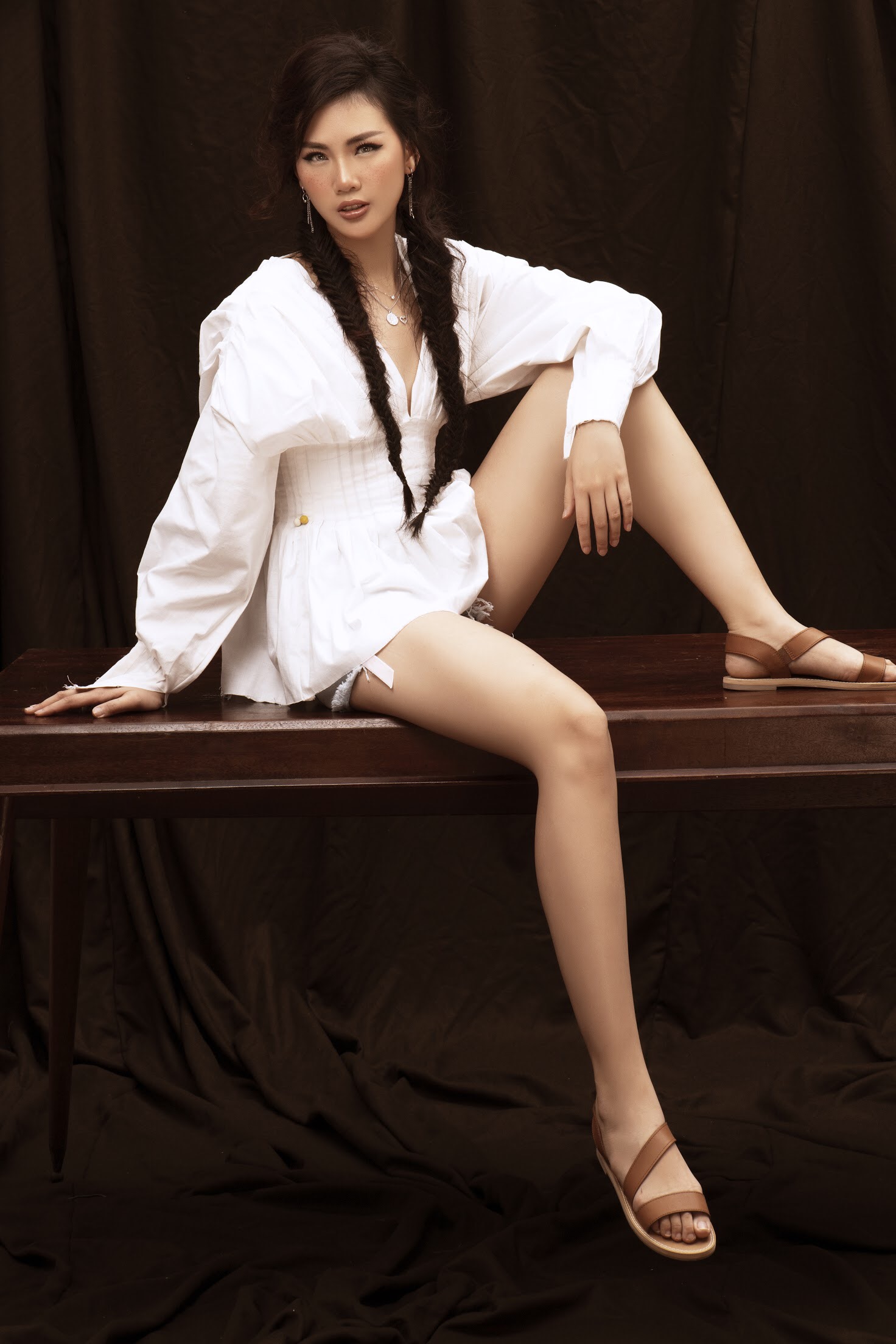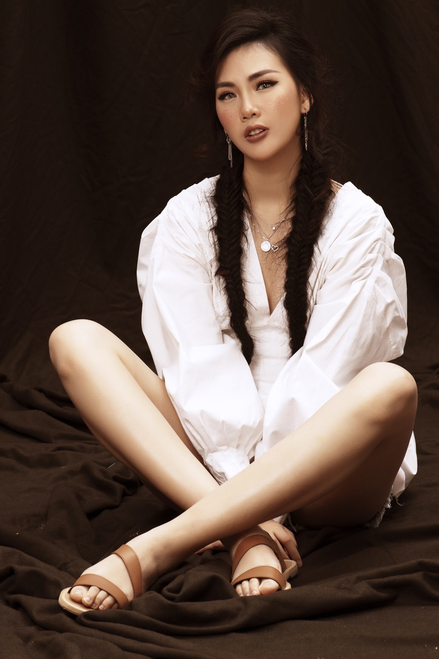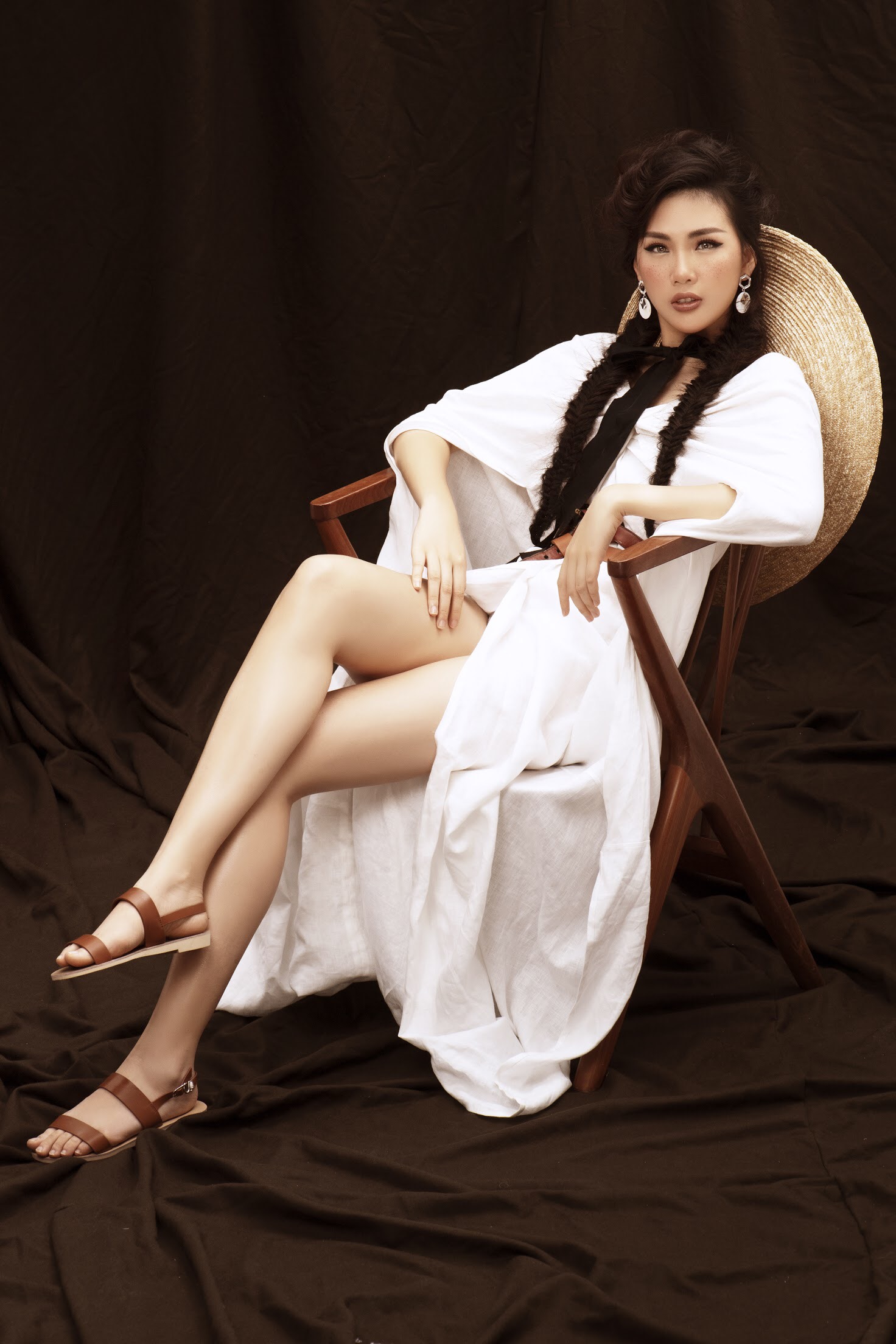 Quỳnh Hoa diện trang phục denim, kết hợp mũ fedora. Phần má được trang điểm tàn nhang, phù hợp với tinh thần bohemian của bộ hình.