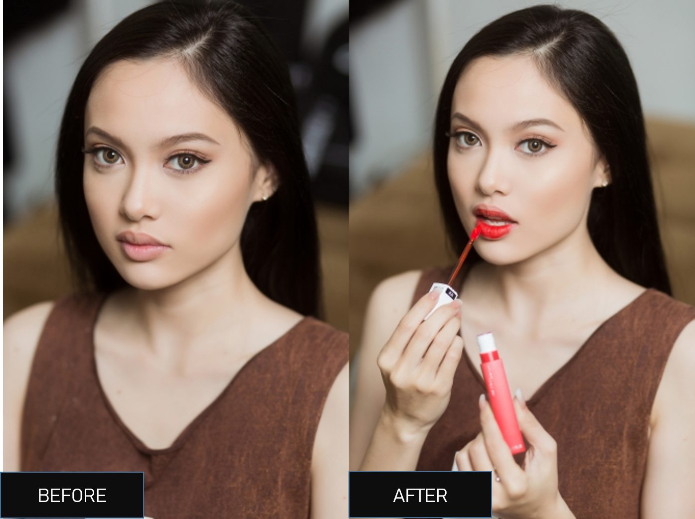 Gương mặt chưa đánh son và sau khi đánh son thật khác biệt phải không nào?