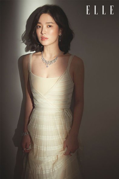Hình ảnh mới nhất của Song Hye Kyo trên ấn phẩm tạp chí Elle Singapore tháng 5 với tone makeup và phần tóc khá nặng nề giúp mỹ nhân xứ Hàn như già thêm vài tuổi