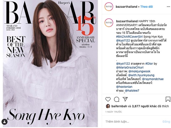 Nhan sắc xinh đẹp và thần thái đỉnh cao cho tờ Tạp chí Harper's Bazaar Thái Lan hồi đầu tháng 3 của Song Hye Kyo nhận được cơn mưa lời khen