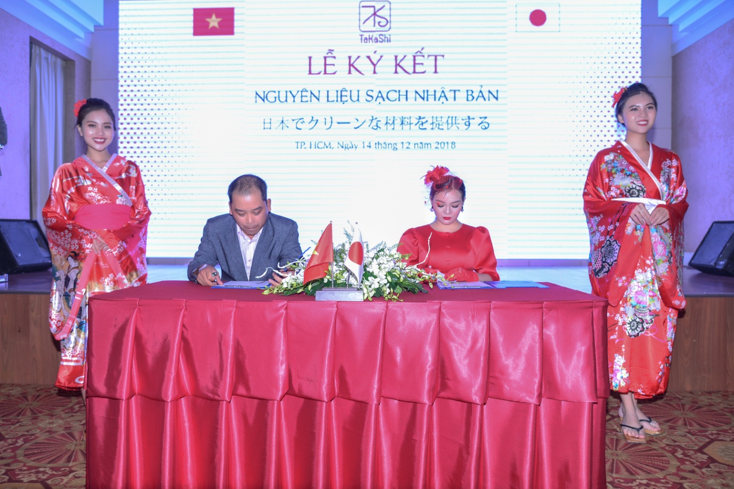 Cũng trong buổi lễ ra mắt thương hiệu Takashi, Đại diện nhà cung cấp nguyên liệu Nhật Bản - giám đốc sản xuất Nguyễn Hoàng Quốc Phong và Á hậu Nguyễn Thái Ngân đã cùng nhau ký kết hợp tác cung cấp nguyên liệu Nhật trong thời gian sắp tới, đánh dấu thương hiệu Takashi chính thức đổ bộ thị trường Việt Nam.