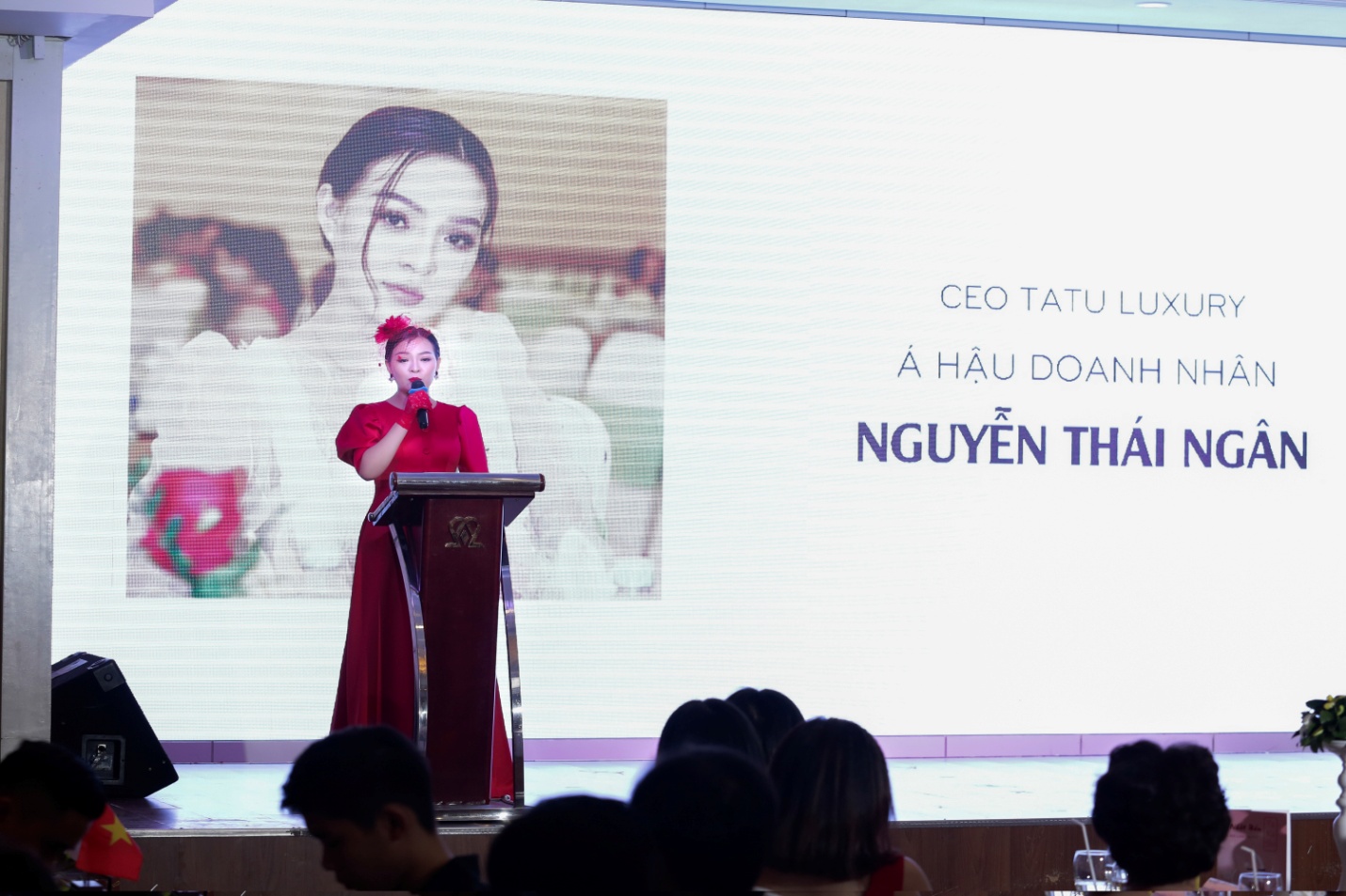 Đại diện từ phía công ty TNHH Tatu Group là sự xuất hiện của cặp đôi nhà sáng lập thương hiệu Tatu Luxury - Mỹ phẩm sạch Nhật Bản - CEO Á hậu doanh nhân Thái Ngân - CEO Lê Thành Trung và Chuyên viên về da - Giám đốc Tatu Spa Cosmetic - Lê Kim Châu.
