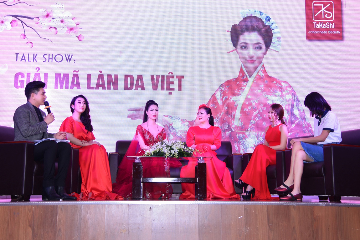 Gần cuối chương trình là buổi tọa đàm với chủ đề “Giải mã làn da Việt” với sự tham gia của Á hậu - Diễn Viên Trịnh Kim Chi, Nữ hoàng Sắc Đẹp Đông Nam Á Kim Trang, Đại diện NCC nguyên liệu Nhật, CEO - Á hậu doanh Nhân Thái Ngân và giám đốc Tatu Spa - Lê Kim Châu.