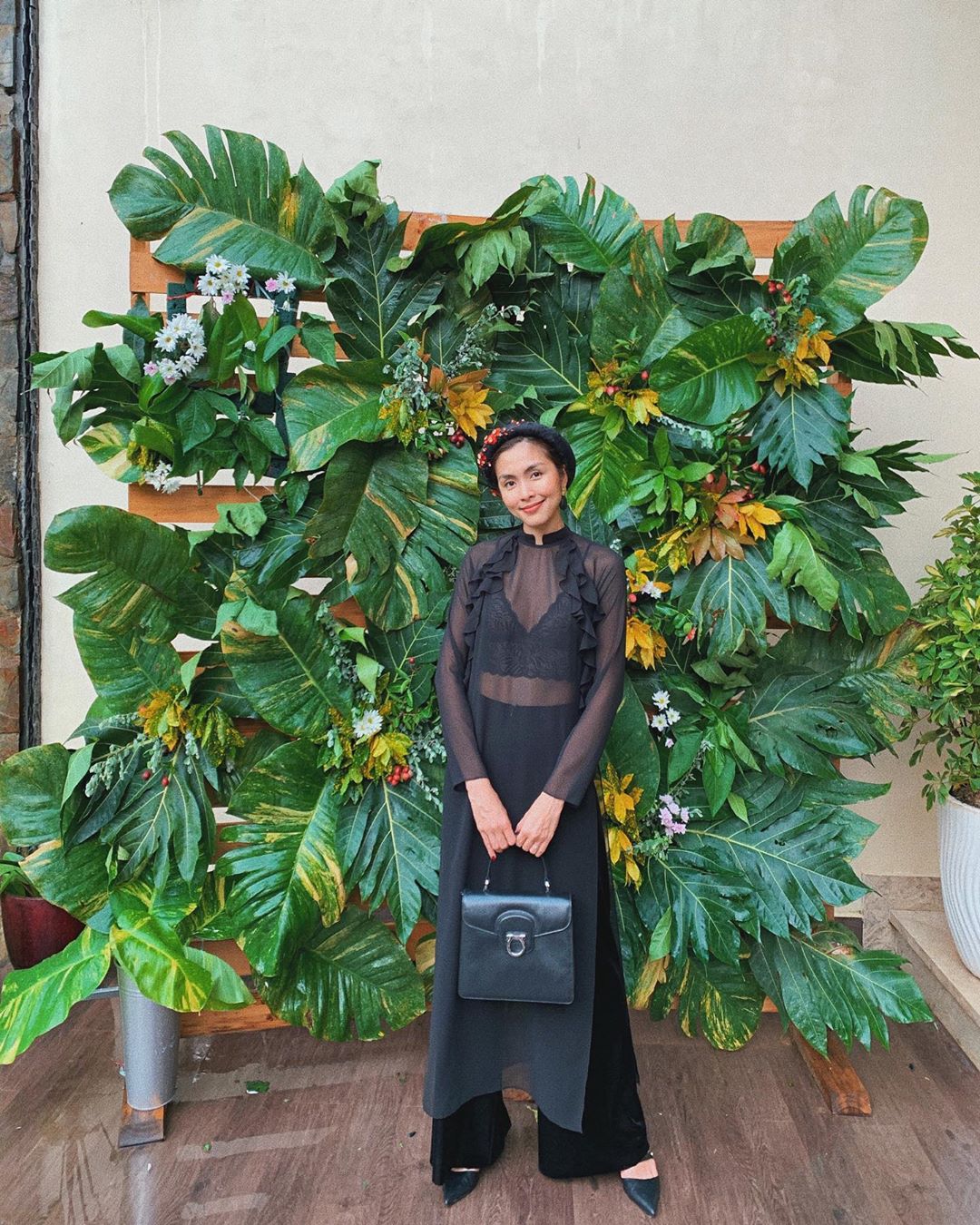 Trong một bức ảnh khác, nàng ngọc nữ càng chứng minh sự gầy của mình khi ngay cả mặc áo dài che kín vóc dáng thì vẫn có thể phần xương ngực khẳng khiu và dáng người 'mỏng dánh' của cô