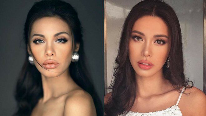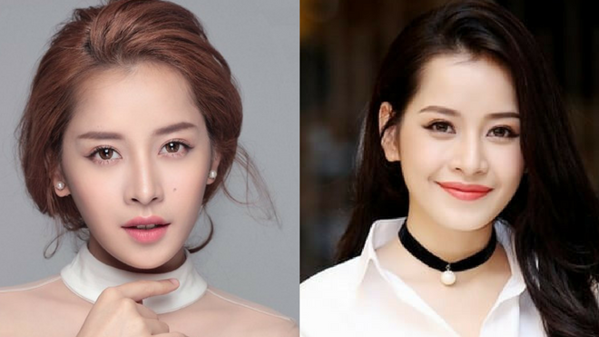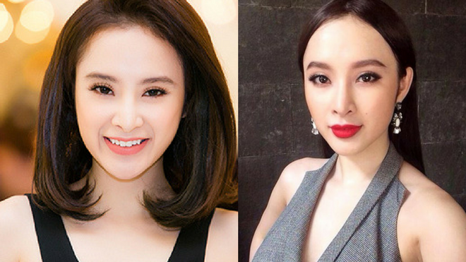 Độ cong của chân mày khiến Minh Tú khác nhau một trời một vực. Với chân mày “cong hết cỡ” (trái) trông Minh Tú giống một quý cô phương Tây hơn bao giờ hết.
