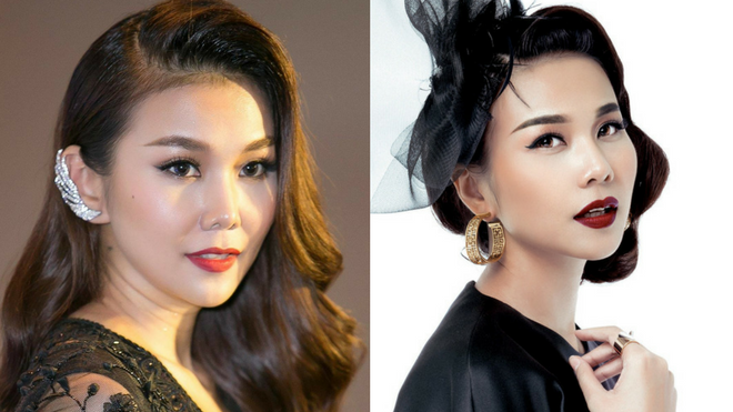Hoàng Thùy cũng sở hữu vẻ đẹp hoàn toàn khác với kiểu chân mày với phần đuôi khác biệt. Với kiểu mày thu ngắn đuôi mày (trái) giúp gương mặt cô trông rạng rỡ pha chút cá tính và sắc lạnh hơn.