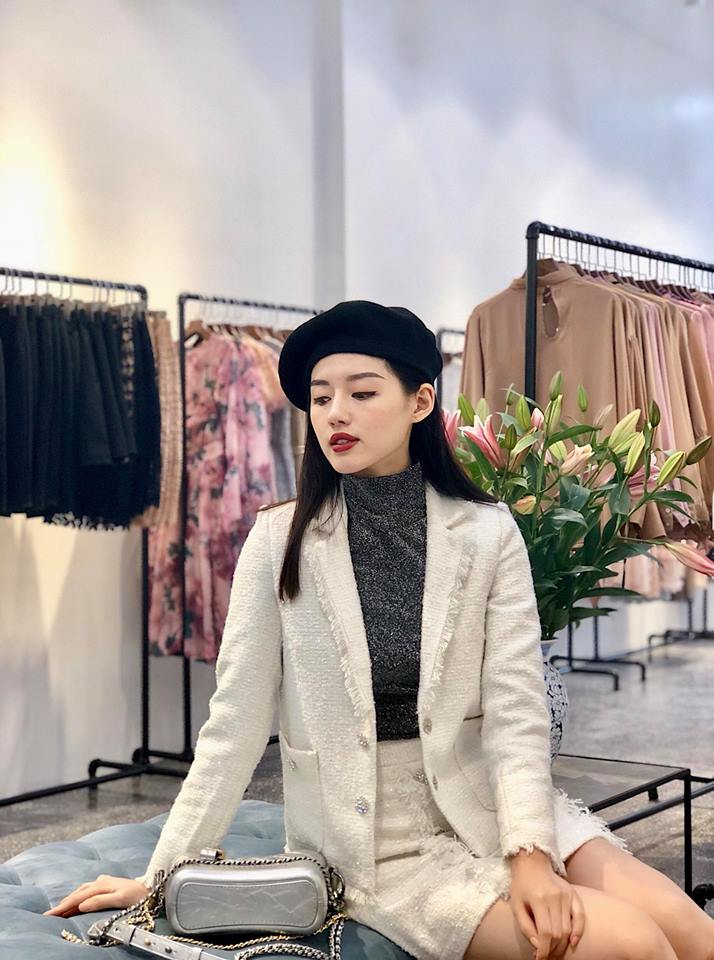 Khánh Linh The Face kết hợp tóc ép thẳng với mũ nồi trẻ trung mà không kém phần thanh lịch.