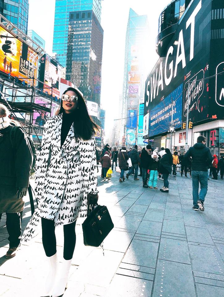 Và cô nàng fashionista Châu Bùi cũng đang trung thành với mái tóc đen buông xõa thích hợp với vạn kiểu mix đồ này.