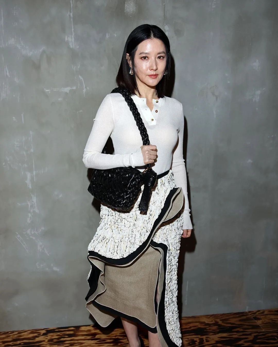 Tiếp nối nhiệt độ của loạt nhà mốt lừng danh, rạng sáng ngày 25/2 (theo giờ Việt Nam), sàn diễn Bottega Veneta Thu/Đông 2024 chính thức trình làng Milan Fashion Week, thu hút đông đảo tín đồ thời trang thế giới quan tâm. Bên cạnh những items mang hơi hướm cổ điển trên sàn runway, sự xuất hiện của ngôi sao châu Á - Lee Young Ae tại thảm đỏ sự kiện cũng đặc biệt nhận được sự chú ý.Góp mặt với vai trò khách mời, nữ thần phim Nàng Dae Jang Geum diện cho mình thiết kế phối hợp với hai tông trắng - đen chủ đạo. Với kiểu áo dài tay xẻ cổ chữ V được làm từ chất liệu thun ôm sát cô khoe khéo số đo hình thể chuẩn cùng khung xương quai xanh thon gọn. Khác với kiểu cách đơn giản ở phần thân trên, nữ diễn viên thêm phần thu hút khi phối cùng chân váy uốn nếp, gợn sóng đầy thanh lịch. Ton sur ton với bộ đôi gam màu tạo hình, Lee Young Ae còn khoác thêm mẫu túi xách đan dây chéo ô biểu tượng của thương hiệu nước Ý. Tăng thêm độ trẻ trung, cô chọn kiểu tóc ép rẽ ngôi giữa được vén gọn cùng phong cách trang điểm nhẹ nhàng. Bên cạnh đó, sự nhấn nhá phụ kiện tông vàng kim cũng được đánh giá cao.Dưới ống kính “hung thần” Getty Images, các dấu hiệu lão hóa ở tuổi ngũ tuần của người đẹp màn ảnh xứ Hàn khó lòng ẩn giấu. Dù đã có sự xuất hiện của vết chân chim nơi khóe mắt hay rãnh cười, song, netizen không thể nào rời mắt khỏi làn da vẫn còn độ bóng mịn, săn chắc của cô. Bên dưới loạt hình ảnh sự kiện, nhiều người hâm mộ không khỏi trầm trồ, xuýt xoa trước vẻ đẹp bị thời gian lãng quên của mỹ nhân họ Lee.Trở lại quá khứ, nhan sắc của bà mẹ hai con Lee Young Ae từng giữ vị trí thứ 2 trong bảng xếp hạng Người đẹp đương đại Hàn Quốc, chỉ xếp sau Kim Tae Hee.