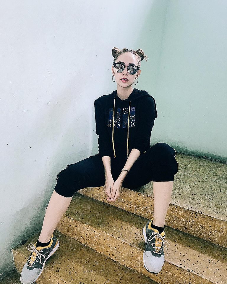 “Đàn chị” Minh Hằng cũng không ngần ngại diện kiểu tóc này với bộ đồ sporty cực ăn rơ.