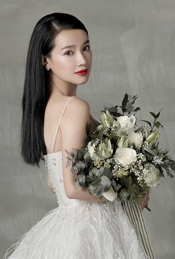 Bên cạnh chiếc váy cưới được đính ngọc trai đơn giản, Nhã Phương chọn kiểu tóc và makeup đơn giản. Không cần quá cầu kì, Nhã Phương vẫn xinh đẹp và ăn điểm 100%.