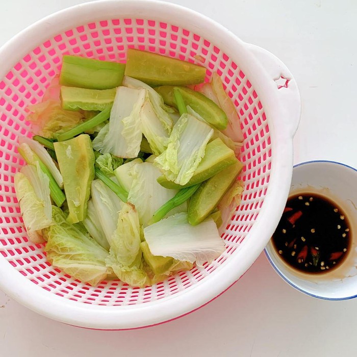 Rau luộc chấm xì dầu