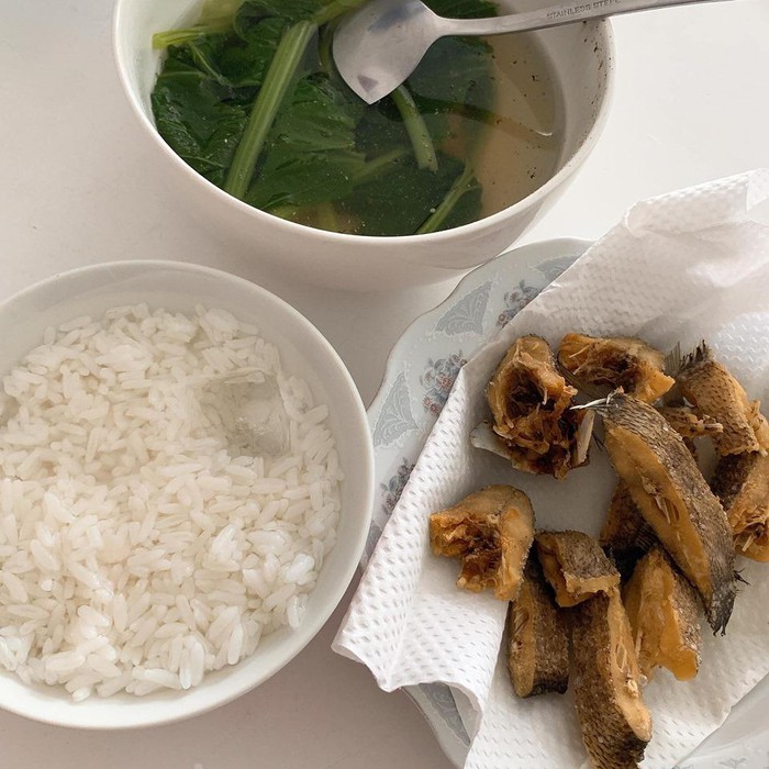 Mới đây, Thuý Vi phải áp dụng chế độ ăn uống kham khổ dành riêng cho người có nhu cầu giảm cân. Không phải là những bữa ăn sang chảnh, đầy đủ thịt cá, bữa ăn của Thuý Vi chỉ “sương sương” vài con cá khô, rau luộc, khoai lang, cá khô,… thậm chí là cơm gạo lứt chan nước đá. Thậm chí nàng hot girl Cà Mau còn tỏ ra không mấy hào hứng: “Không vui vẻ gì đâu nha”.