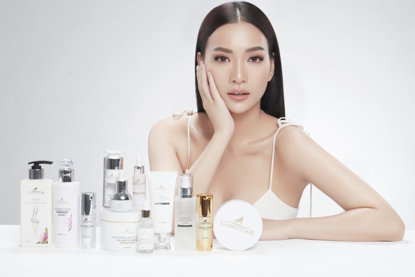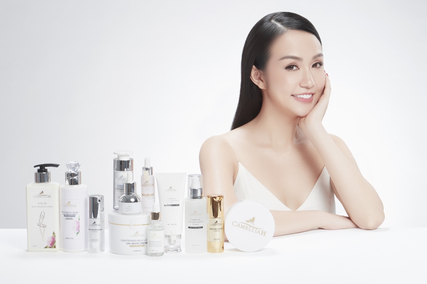 Bộ sản phẩm làm đẹp mới mang thương hiệu Camellia H được Hương Baby tung ra thị trường trong những ngày đầu Thu gồm kem dưỡng da mặt ngày và đẹp, kem dưỡng body ngày vào đêm, sữa rửa mặt, nước hoa hồng, serum gama cấp nước, serum làm trắng da Gluta 12000, kem tan mỡ giảm béo, thuốc giảm cân, thuốc uống trắng da.