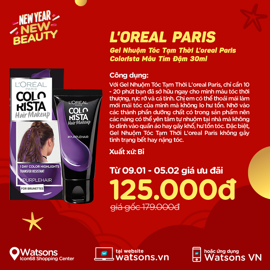 5. Gel Nhuộm Tóc Tạm Thời L'oreal Paris Colorista Màu Tím Đậm