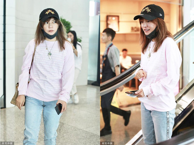 Mới đó, cánh săn ảnh cũng bắt gặp Triệu Vy tại một sân bay Trung Quốc. Nàng “Én nhỏ” diện đồ đơn giản, thoải mái, với áo phông form rộng, quần short, kết hợp mũ lưỡi trai, giày thể thao, túi đeo chéo và mắt kính đen. Tuy nhiên, bộ đồ cô mặc trông nhăn nhúm chẳng khác lôi từ đáy tủ lên và không là qua trước khi mặc.
