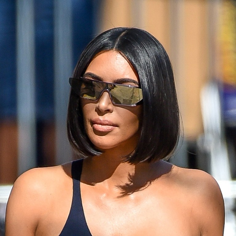 Kim Kardashian biến hóa xíu với đuôi tóc gáy úp cong