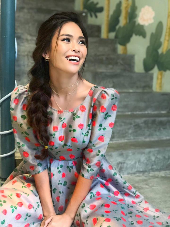 Và ngay cả khi chọn màu son môi hồng nhẹ nhàng, Mâu Thủy vẫn trang điểm thật kĩ đôi mắt đẹp hút hồn của mình.