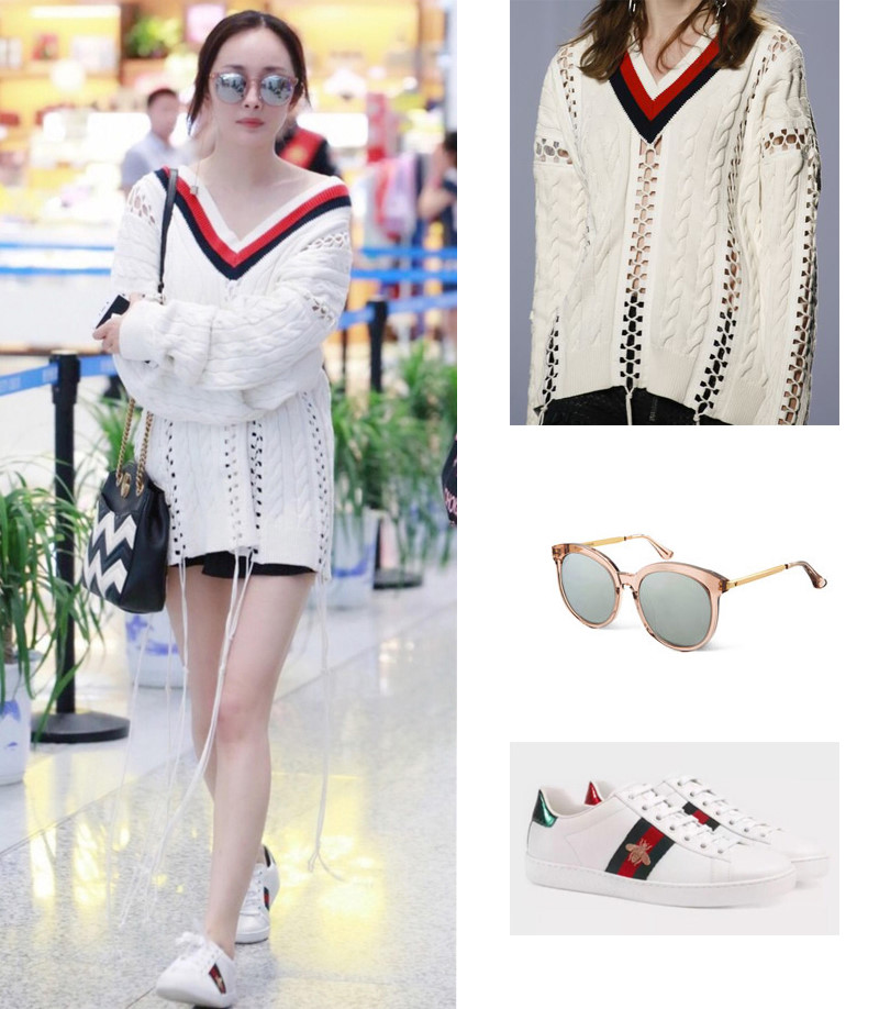Hay áo len rách Alexander Wang, kính mắt Gentle Monster cùng sneakers thương hiệu Gucci.