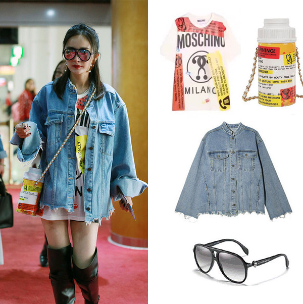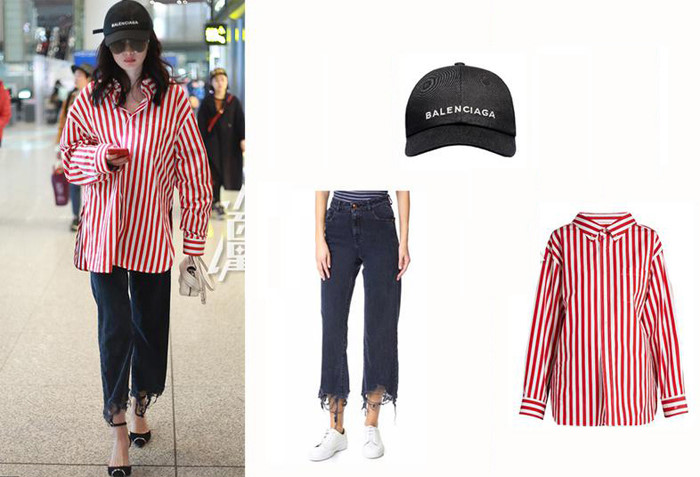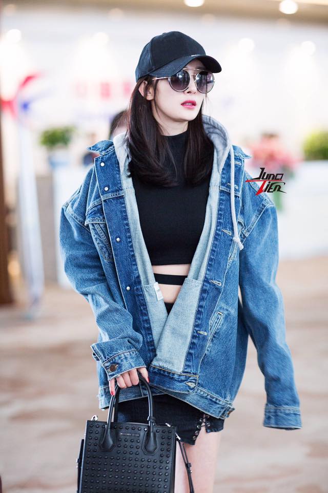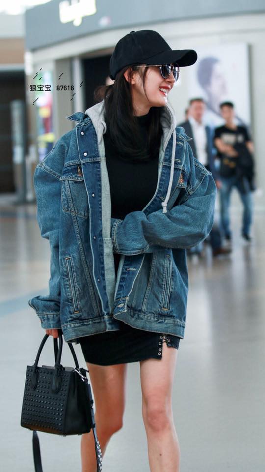 Lần này, Dương Mịch chọn cho mình mũ lưỡi trai và áo khoác jean của Vetements, kết hợp cùng giày Nike và túi xách Michael Kors. Với gout thẩm mỹ tinh tế như vậy Dương Mịch hiện đang làm đại diện cho rất nhiều hãng thời trang và trang sức nổi tiếng, điển hình là Piaget và thường xuyên xuất hiện trên các tạp chí thời trang điển như Vogue, Elle...