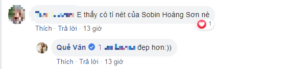 Và khi có khán giả cho rằng Việt Anh 'có tí nét' giống Soobin Hoàng Sơn thì Quế Vân lập tức khẳng định nhan sắc của Việt Anh thậm chí còn đẹp hơn giọng ca “Phía sau một cô gái”